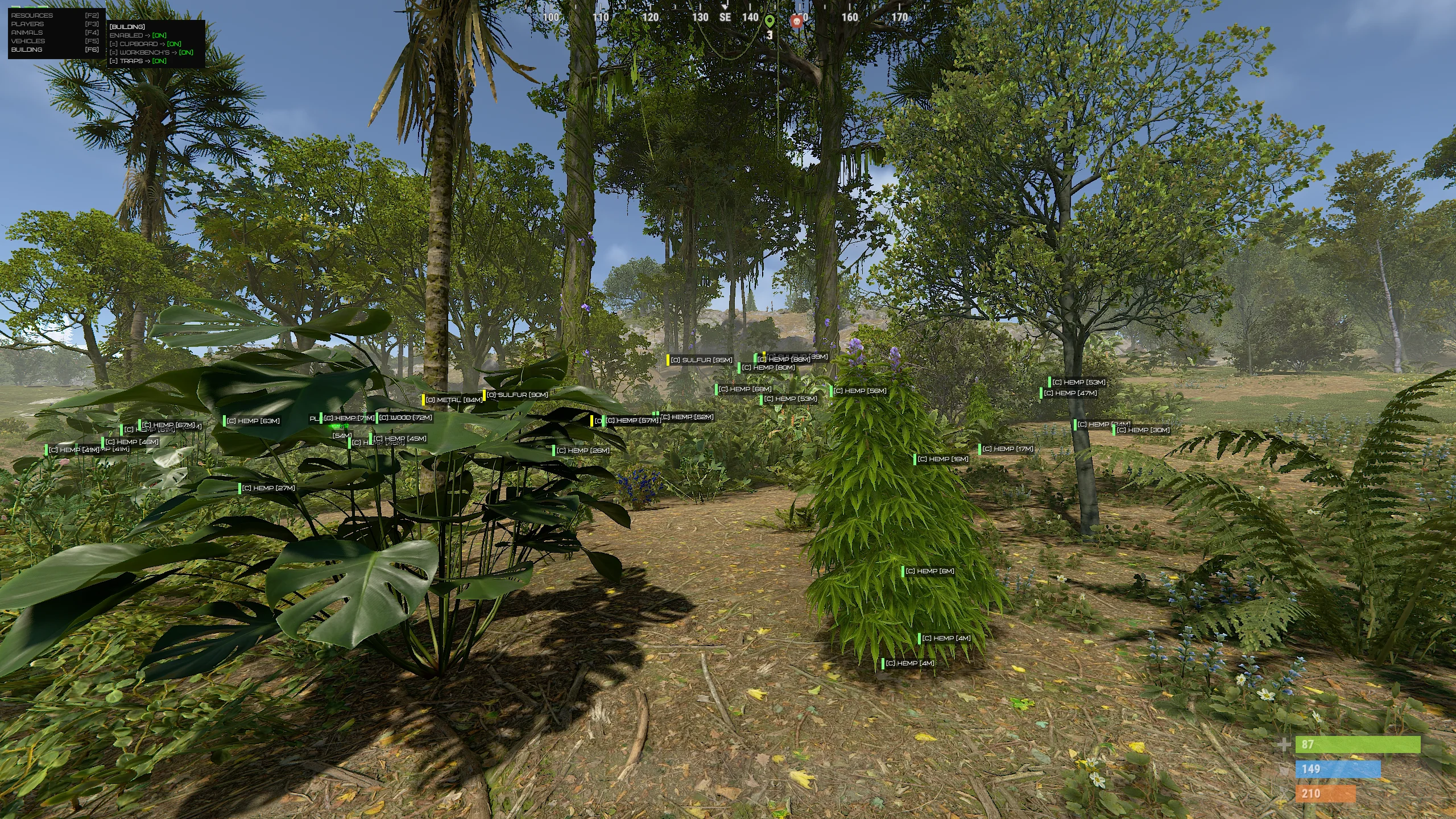 Phoenix Rust ESP provides an expanded overview of events in the Rust world. Players, NPCs, animals, vehicles, loot containers, harvestable resources, and key environmental objects are displayed. This allows planning routes in advance, avoiding unwanted encounters, and optimizing farming.